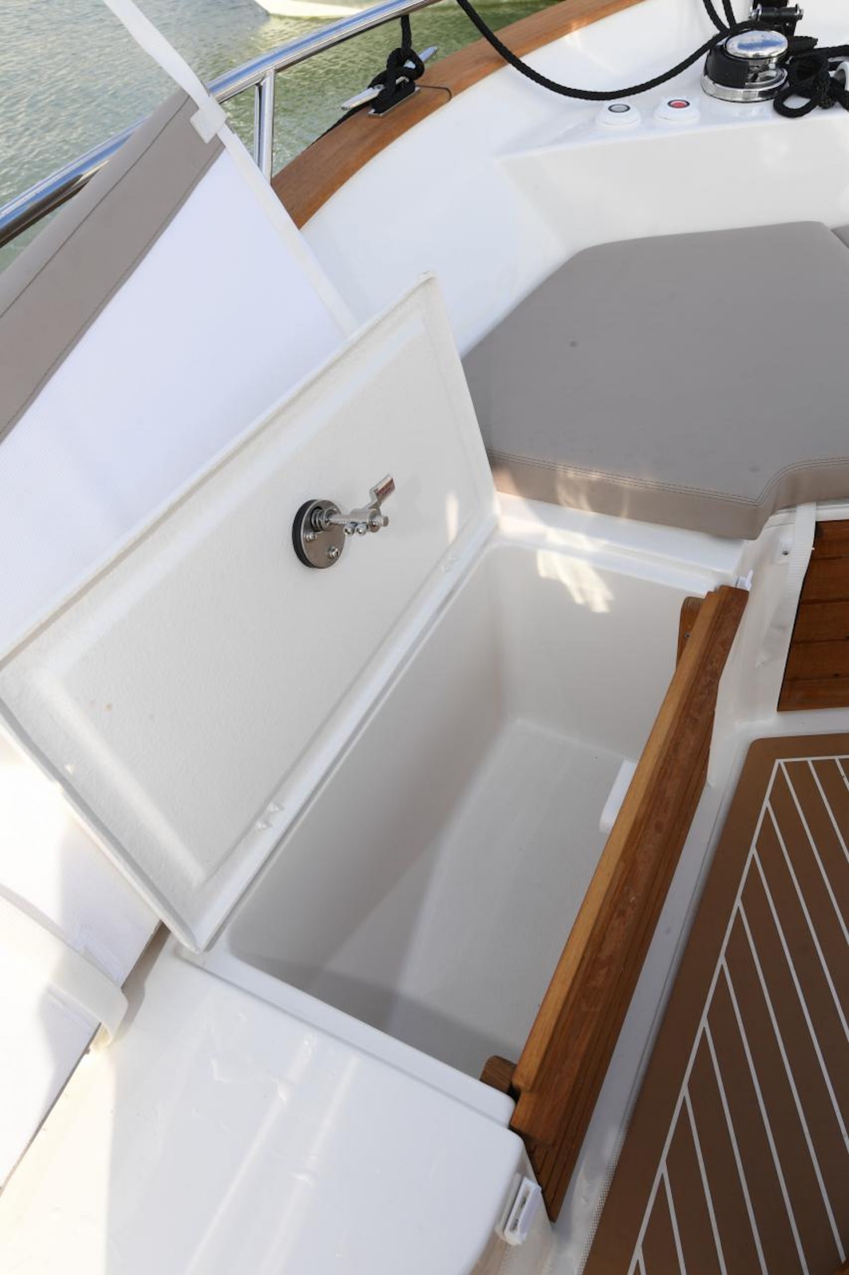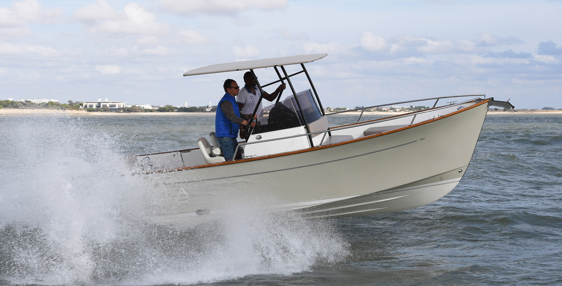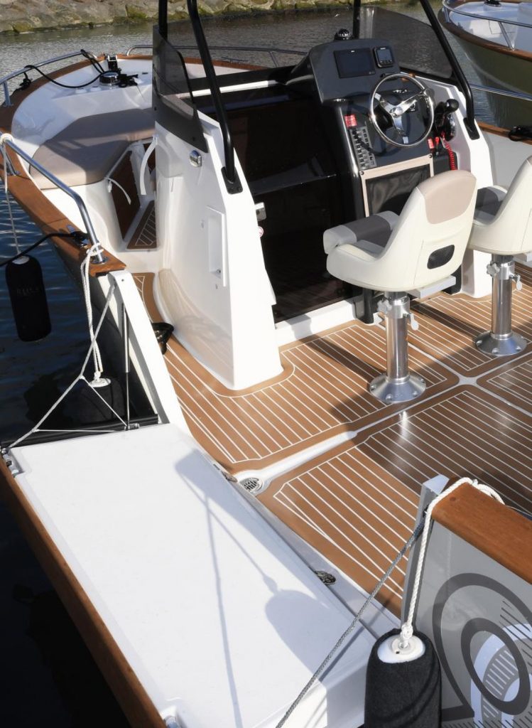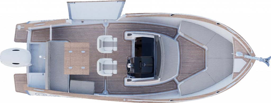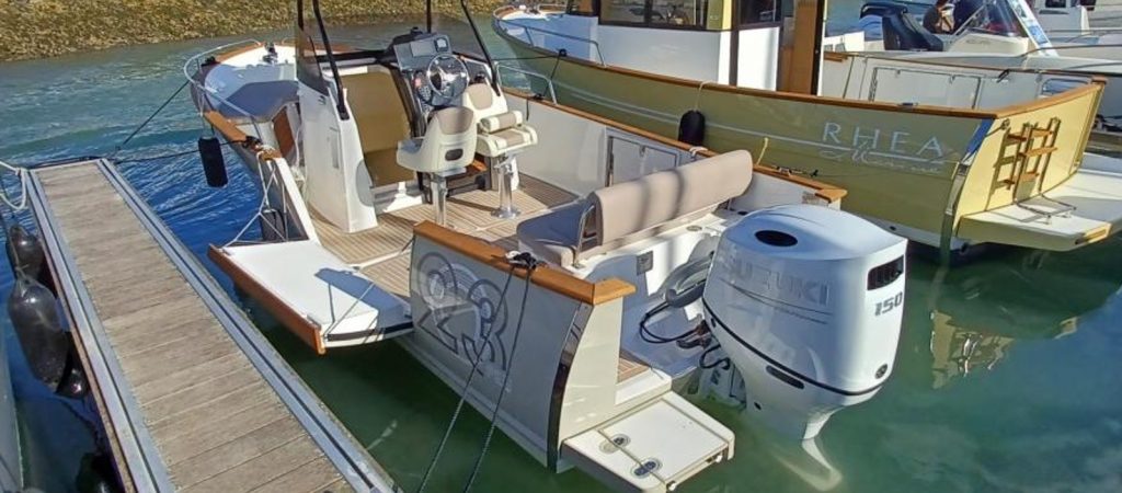 A lively, reassuring hull, high protective freeboards, and a clear, flowing deck layout that naturally invites you to enjoy the water. Light, agile and effortless to handle, it is as comfortable on spontaneous outings as it is on more ambitious coastal runs. Its neo-classic silhouette, a signature of the yard, gives it a discreet and elegant presence—an ideal introduction to authentic, characterful day-boating.