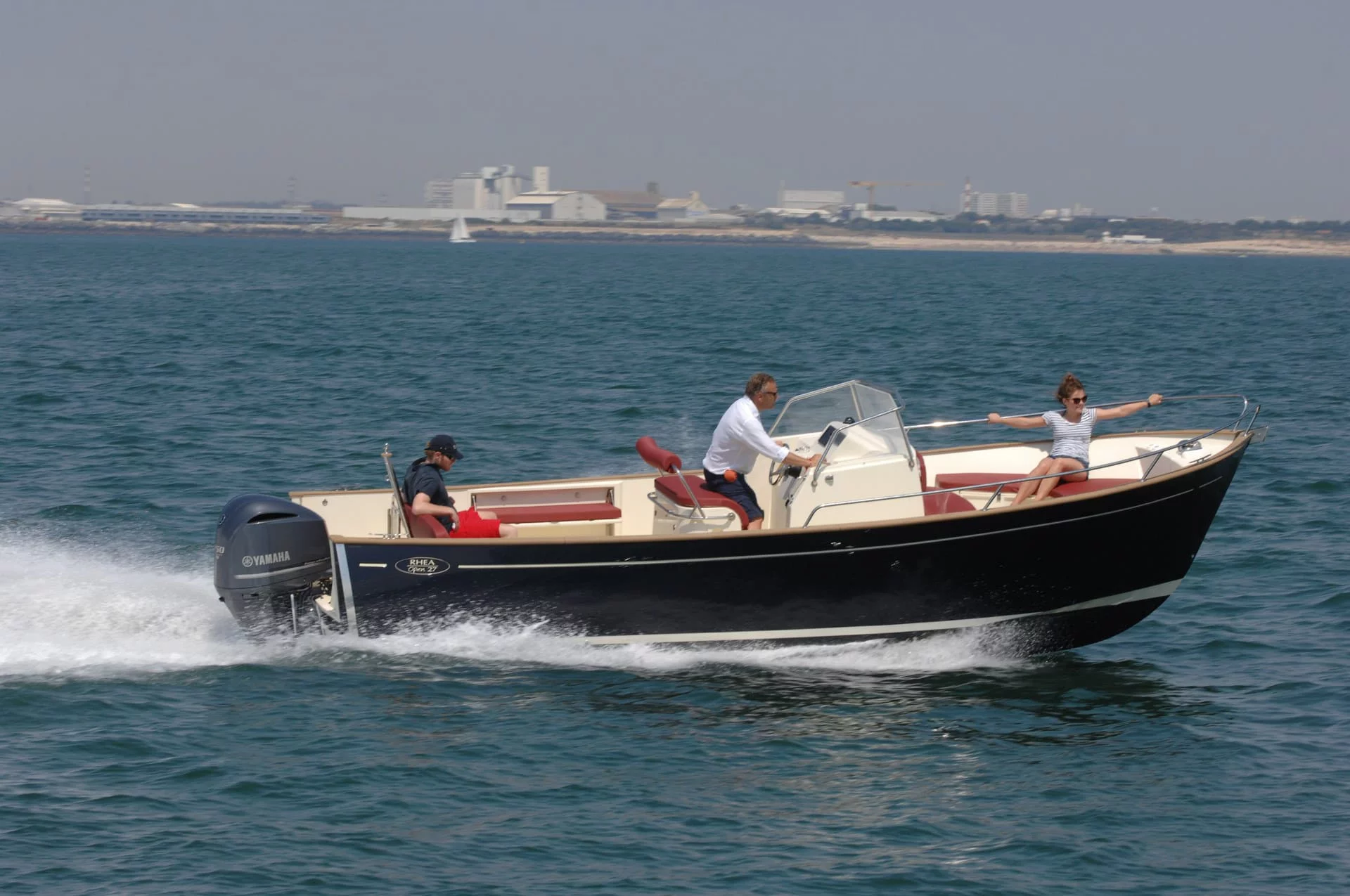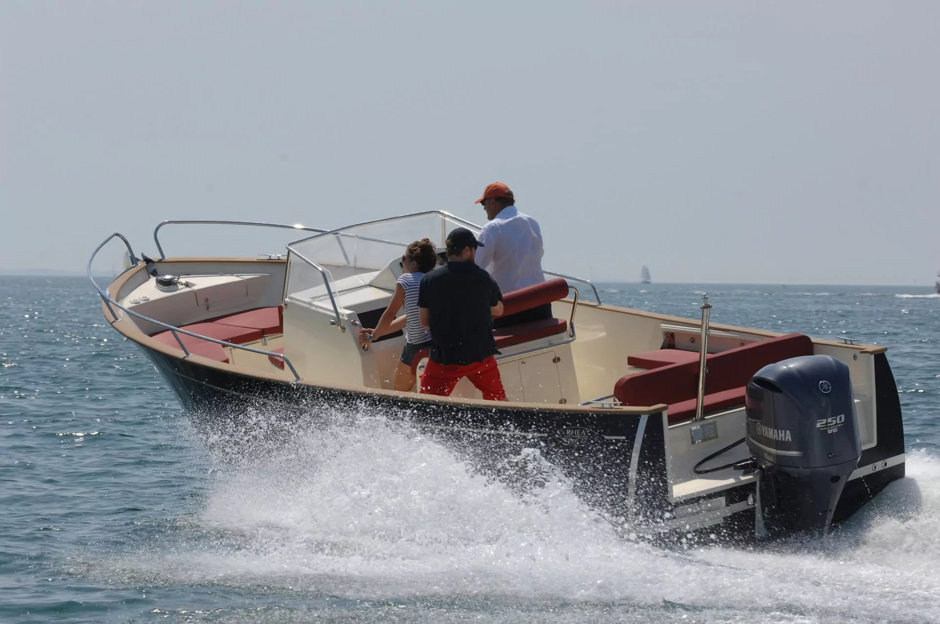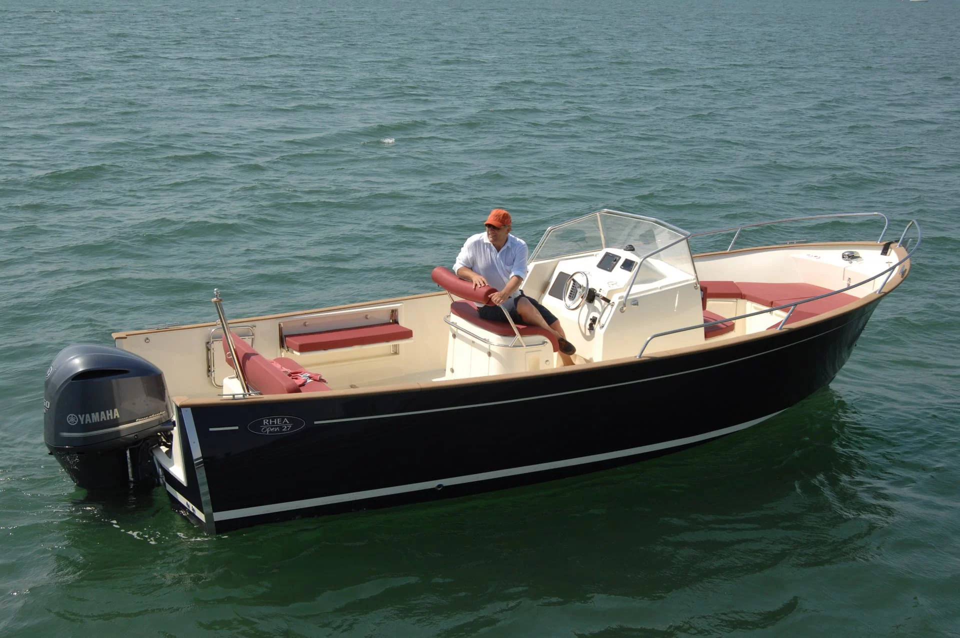 Sa carène en V profond lui confère un comportement marin irréprochable, qui lui a valu d’être élu « bateau de l’année » par les lecteurs de Moteur Boat Magazine. Avec son haut bordé élégamment habillé de bois synthétique, son cockpit bien large et son carré avant transformable en solarium géant avec l’équipement complémentaire, le Rhéa 27 permet de cohabiter en nombre sans se gêner !