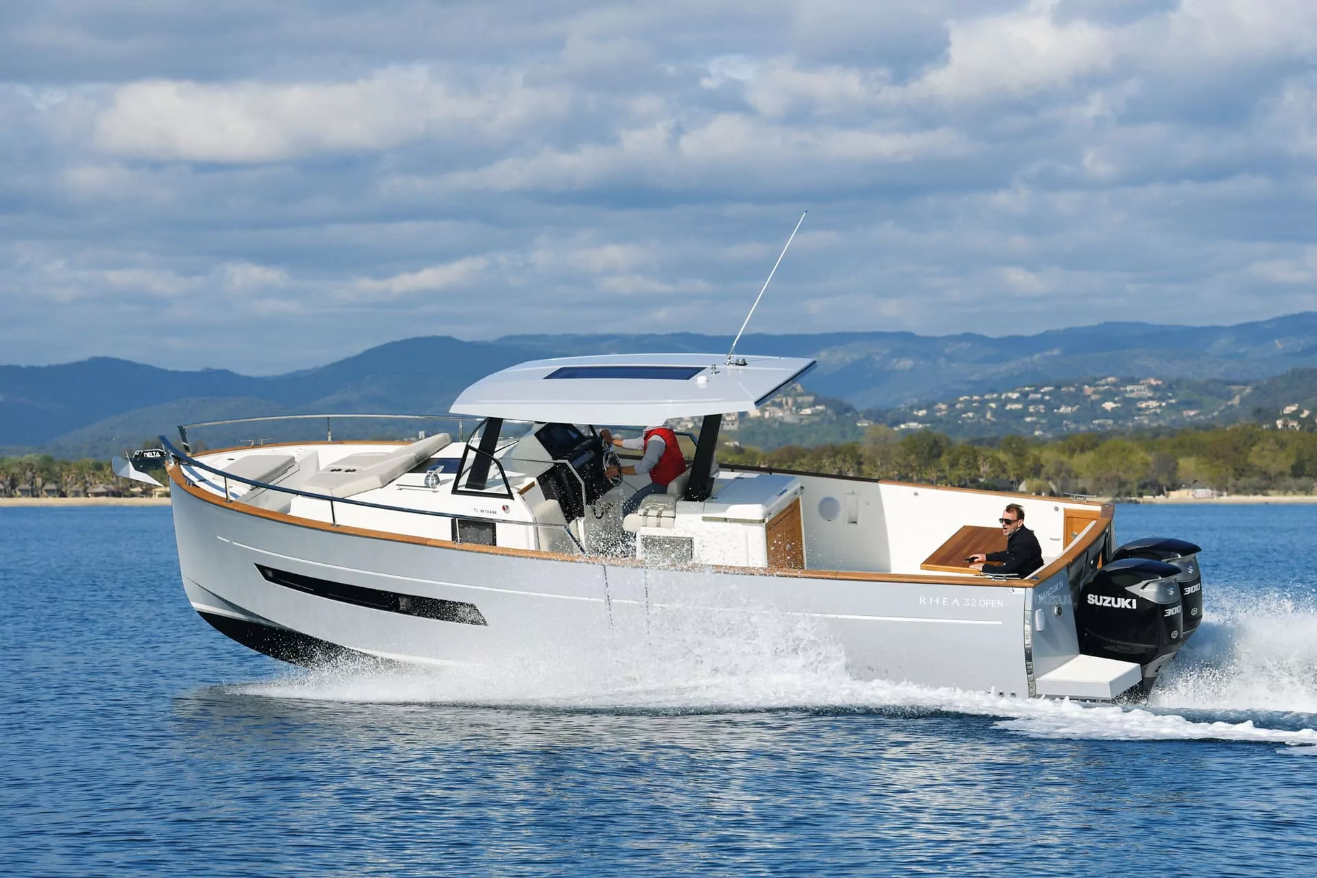 Designed with the same deck plan, both units feature an identical cockpit, cabin, and forward area. The difference lies in the helm station: open-air on the Open model, but sheltered under a rigid T-top.