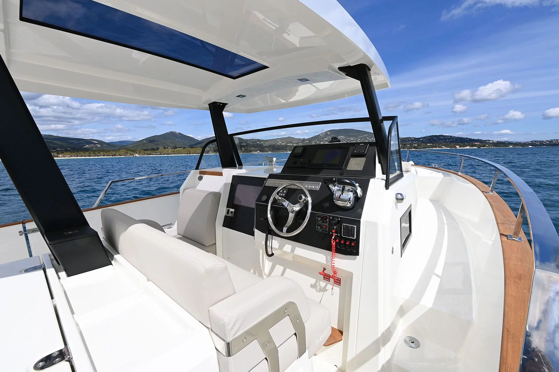 Conçues sur un même plan de pont, les deux unités disposent d’un cockpit, d’une cabine et d’un avant aux aménagements identiques. La différence se situe au niveau du poste de pilotage. À l’air libre sur l’Open mais pouvant être abrité sous un T-top rigide.