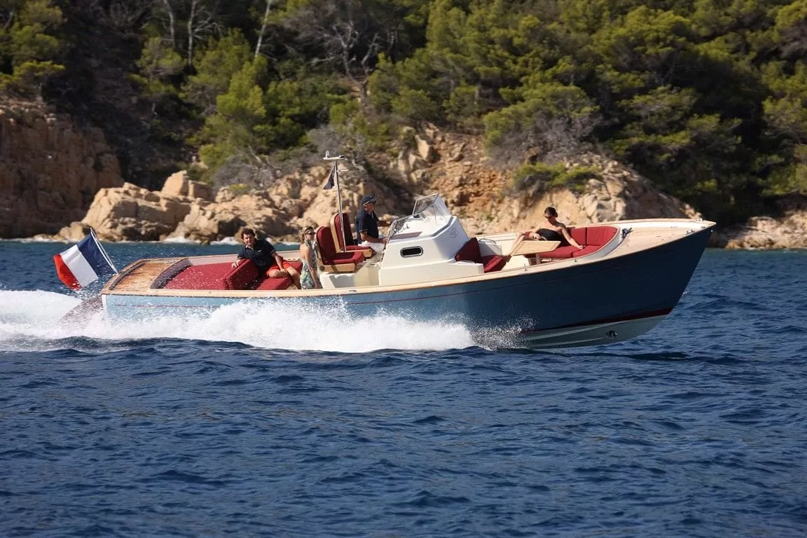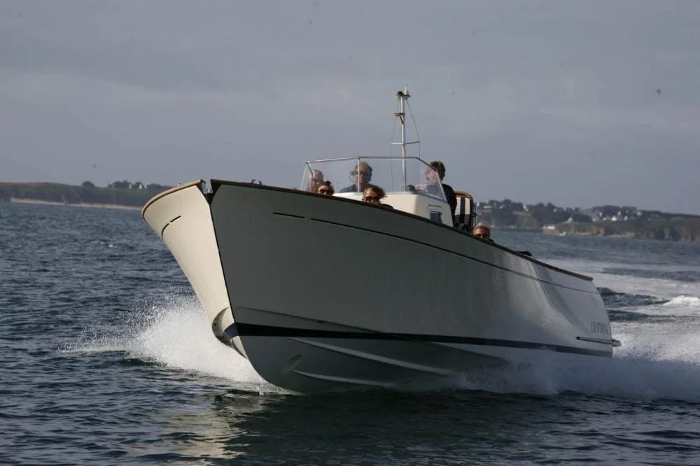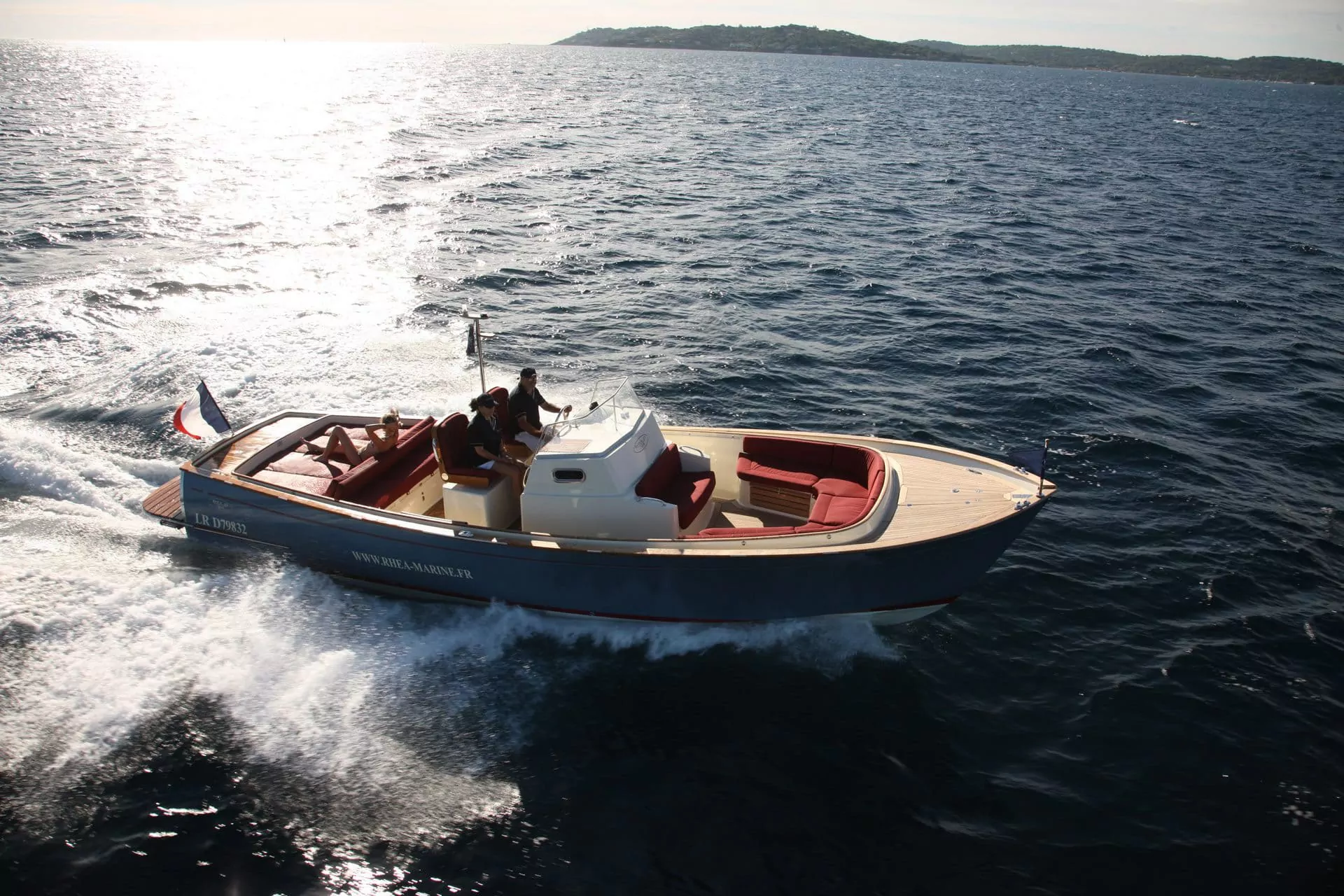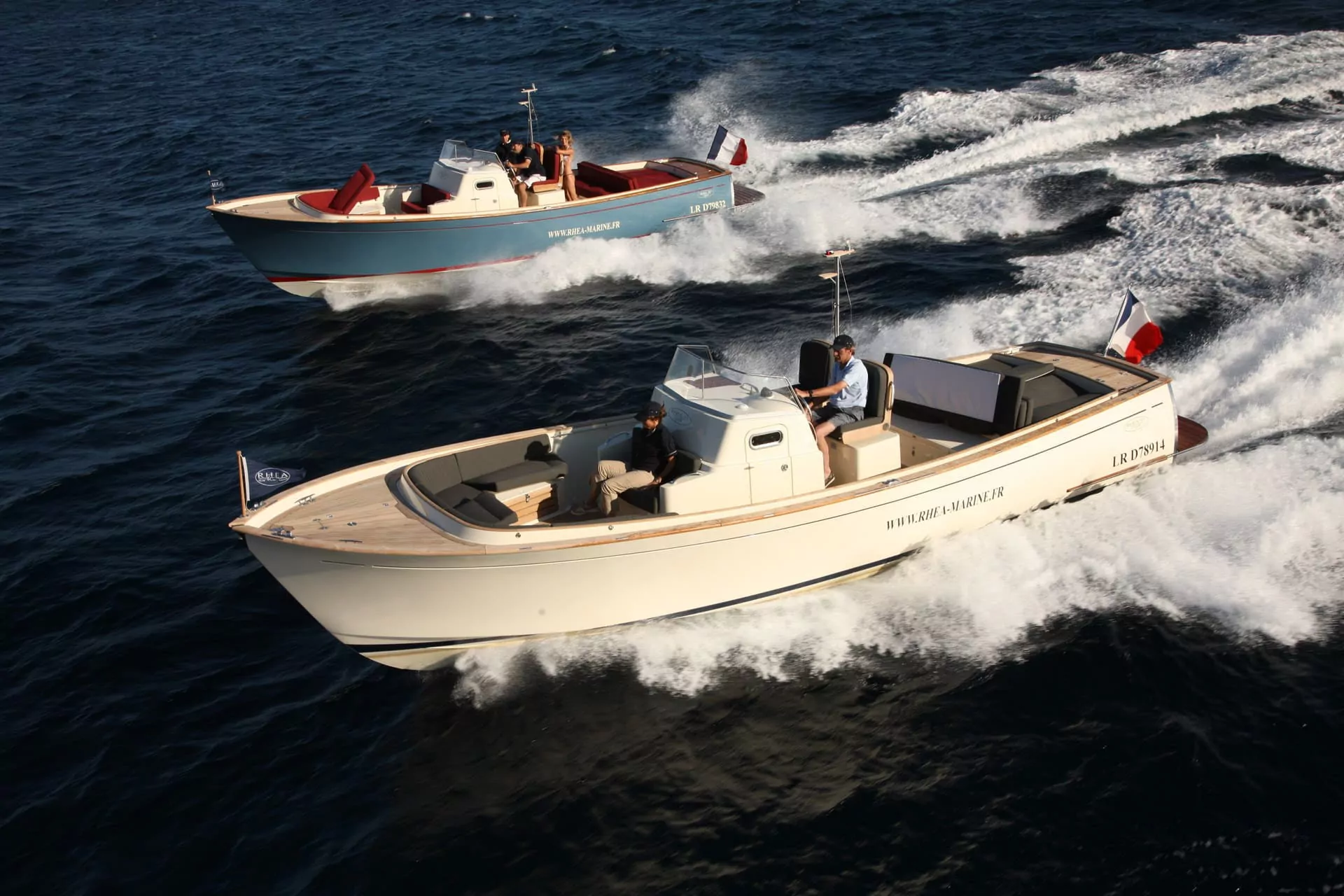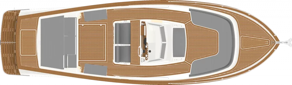Bateau moteur in-board sportif, la ligne harmonieuse et élégante du Rhéa 35 Open, le choix de ses matériaux, de ses propulsions et ses possibilités variées confèrent à cet in-board sportif son caractère fort et unique.